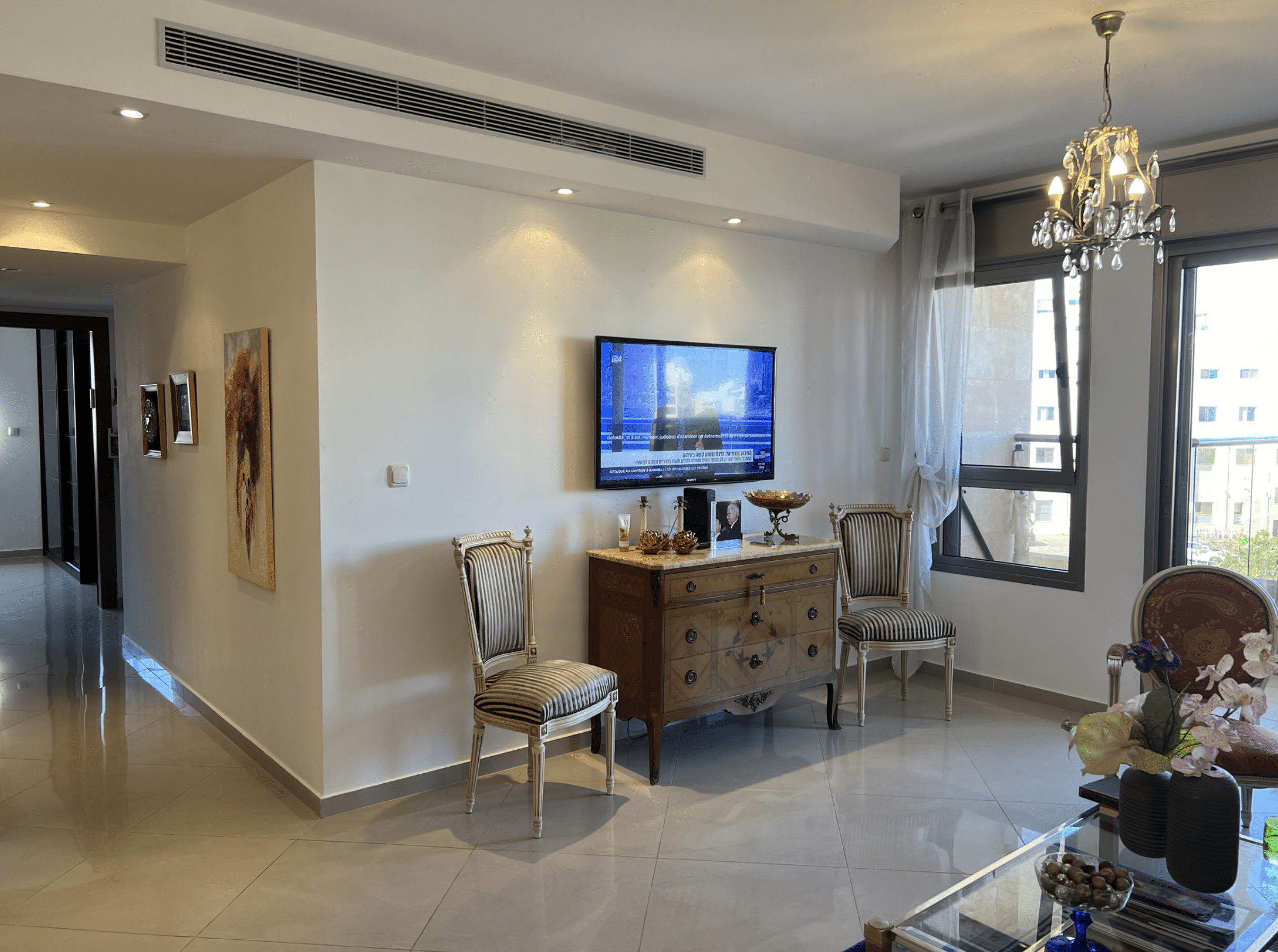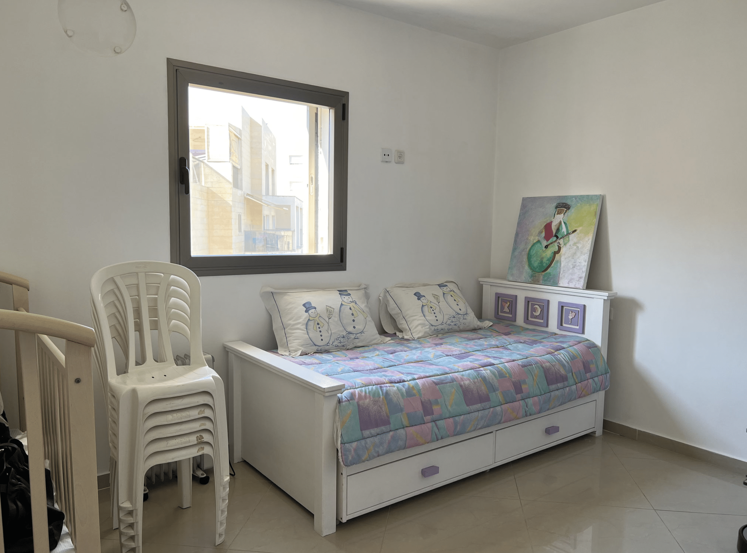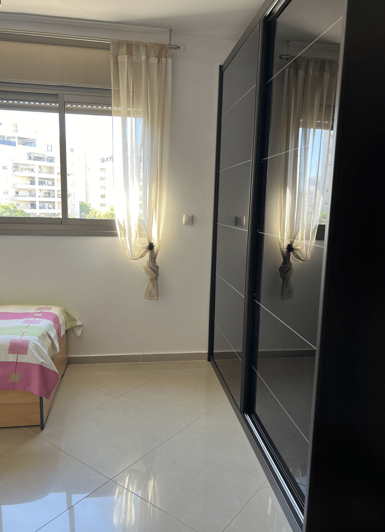 Au 3ème étage d'un immeuble de bon standing au quartier Yud Beit, Proche de la yeshiva Pinto, des magic Towers et de tous commerces, Confortable appartement de 140m2, comprenant comme suit: Séjour avec grandes baies vitrées donnant sur un balcon avec vue dégagée Belle cuisine parfaitement bien équipée Salle à manger Buanderie avec lave-linge Suite parentale avec salle de bain douche attenante 2ème chambre avec 2 lits simples 3ème chambre, de sécurité, avec lit convertible 2ème salle de bain avec baignoire Climatisation centrale TV avec chaînes étrangères Internet wifi Conviendrait à une famille très respectueuse du bien d'autrui